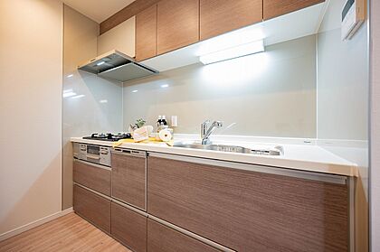 キッチンは食器洗浄乾燥機、オールスライド収納、水栓一体型浄水器を装備