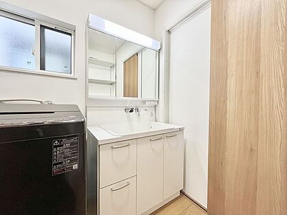 窓のある洗面室!キッチンからパントリーを抜けると洗面室につながるため、家事動線もバッチリです♪