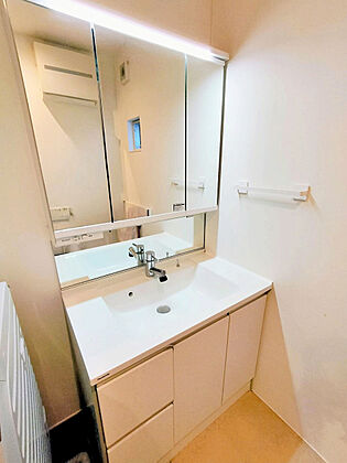 鏡の裏に洗面用具や化粧品などをまとめて収納でき、表からは見えないので、洗面台の上がいつもスッキリと片付きます。