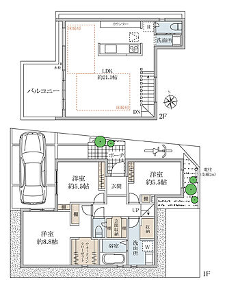 2階は周囲の建物に遮られにくいため、太陽の光が入りやすく、風通しも良好で明るく開放的なリビングで過ごせます。