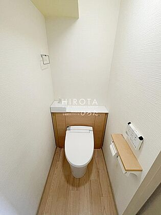 壁一面カウンターがあるので鏡も大きく、空間全体に奥行きが生まれ広く感じられます。