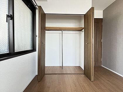 各居室に大きめのクローゼットがついています。引き出しタイプの家具を入れれば、ハンガーにかけれない物もスッキリ収納できますね。