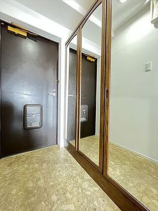 玄関収納には全身が映る鏡が付いているので、コートを着てカバンを持ち、靴を履いた状態でのトータルチェックが出来ますね♪