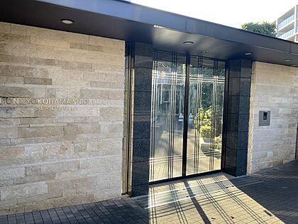 ウォーターウォールがあり爽やかで上品なマンションロビー