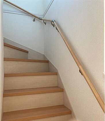白い壁に木目の階段で落ち着いたデザイン。手すりもついているので安全に上り下りできます。室内(2025年01月)撮影