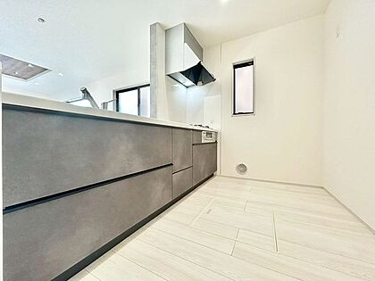 【キッチン】家族の会話が弾む対面キッチン。使いやすい動線で毎日の料理が楽しくなる空間です!