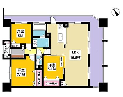 19.5帖のLDK 窓から明るい光の差込む開放的なリビングは、家族団欒の時間が増えそうです。