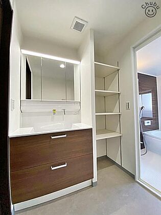 鏡の裏にたくさんの小物をしまえる全収納タイプの洗面台です!