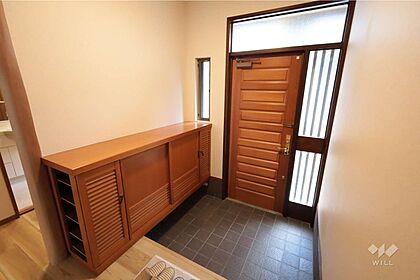 玄関、シューズボックス付きでたっぷり収納でき、玄関が散らかる心配も少ないです。[2025年12月1日撮影]