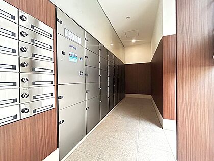 【宅配ボックス・メールボックス】一階オートロックの開錠時、留守中の着荷をモニター上でお知らせされます。お帰りの際にそのまま宅配ボックスへ荷物を取りに行っていただけます。