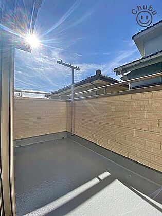 日当たりも良く、毎日のお洗濯が楽しくなりそうなバルコニー!広々しているため家族分の洗濯物もしっかり干せます。お布団も手軽に干せていつもポカポカ陽気に包まれます。洗濯物も早く乾きそうです!