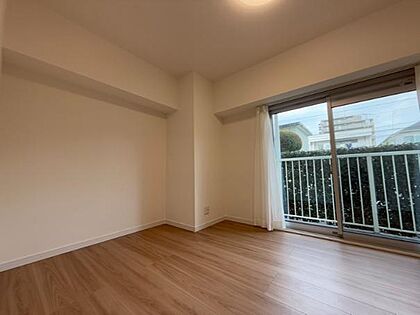 【洋室(南側)/約6.0帖】陽当り良好な南東向きバルコニーに面しており、掃き出し窓から出入り可能。フローリング仕様で、日々のお手入れがスムーズです。