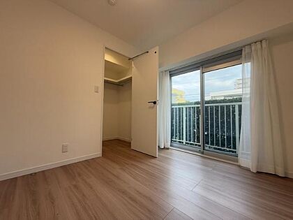 【洋室(南側)/約6.0帖】クローゼットが設けられているため、衣類やバッグ類の小物がすっきり片付きます。クローゼットの扉とクロスが同系色で、空間がより広く感じられます。