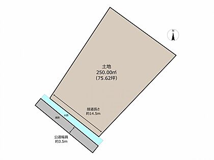 【区画図】接道の長さ約14.5m。図面と現況に相違がある場合は現況優先とします。
