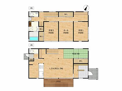 【間取図】2LDKの住宅。図面と現況に相違がある場合は現況優先とします。