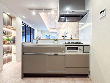 【家具・小物(調度品)は販売価格に含まれません】ゆとりあるキッチンスペースを備えるリビングは家族が1番くつろげる癒しの空間です。