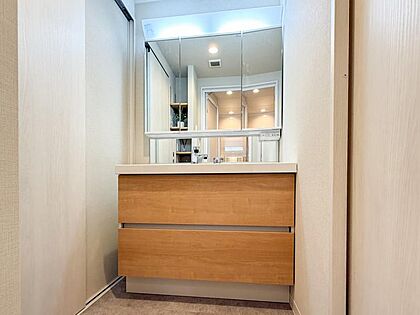 使い勝手の良い洗面台で、朝の準備もスムーズにこなせます。