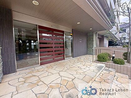 マンションエントランスです。落ち着いた温かみのある色調で、住む人をやさしく迎えてくれます。