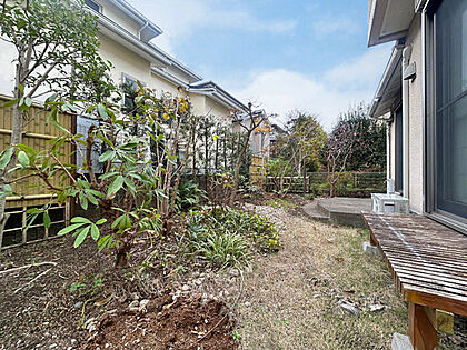 庭のあるお住まい。ガーデニングやお子様とプール遊びなどお庭ならではの楽しみ方のできる住戸です。