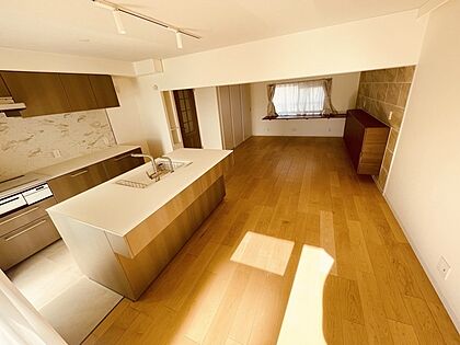 南側のバルコニーから存分の光が差し込むダイニングキッチンスペース。
