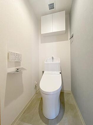 ストック品の収納に役立つ上部吊戸棚、ウォシュレット付き♪ 2019年に新規交換されています♪