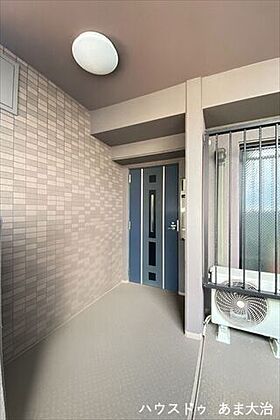広々とした玄関前エントランス。ベビーカーや三輪車、アウトドア用品などを玄関先に一時的に置くこともできそうなゆとりがありますね。 ※居住中につき室内をCGにて家具消しをしたものです。