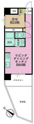 1LDK、専有面積30.6m2、バルコニー面積5.44m2