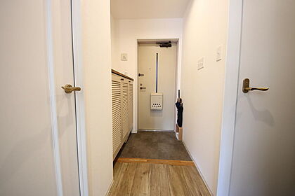 玄関からリビングにむけての廊下です♪ガラスの向こうには南向きの明るい日差しが感じられます♪