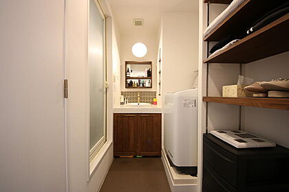 洗面室にお洒落なドレッサーとの相性がよい、カウンター収納あります。