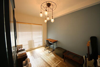 南向きに面した明るい洋室スペース♪デザイン性の高いガラスウォールで開放感あり♪センスを引き出す照明もおしゃれ空間を演出します♪(照明付き)