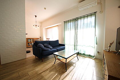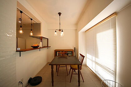 やわらかい日差しが差し込む南向きのダイニングスペース、床はデザイン性の高いフロアタイル施工!照明がとてもお洒落です(照明付き)