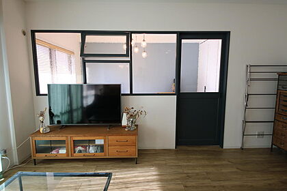 キッチンからも開放感と見通しがよくなるようガラスを設けたデザインです。ダイニング・リビングと見渡すことができます♪