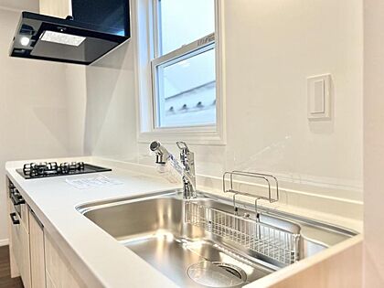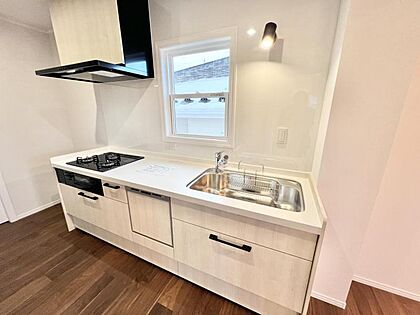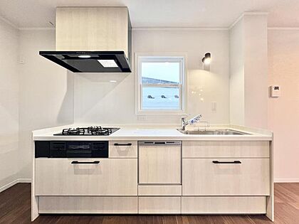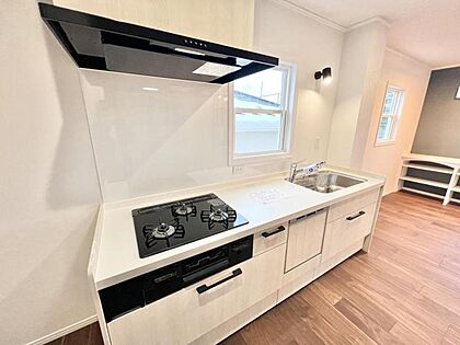 レンジフード(キッチン換気扇)。調理時の煙やにおい、油汚れを効率よく集めて屋外に排出します。