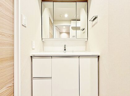清潔感と心地よさを重視した、上質感漂うパウダールーム。