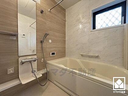 浴室暖房乾燥機付き。真冬の寒い浴室を暖かく、また雨の日の洗濯物の乾燥にと多用途に活躍する機能です。