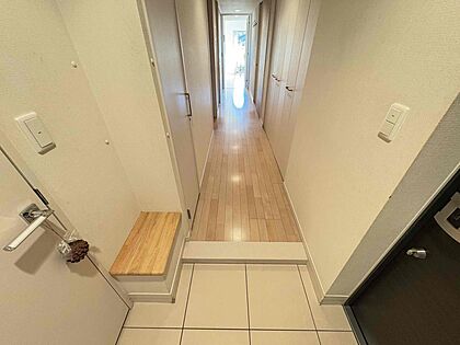 住戸の奥まで自然光が届く明るい廊下。収納が整然と並び、生活用品をすっきりと片づけられます。玄関からリビングまでの動線もスムーズで、毎日の暮らしやすさを感じられる空間です。