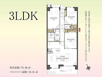 *間取図*【3LDK】機能的に設計された間取りで、快適生活♪全居室収納があり荷物もスッキリ片付きます♪