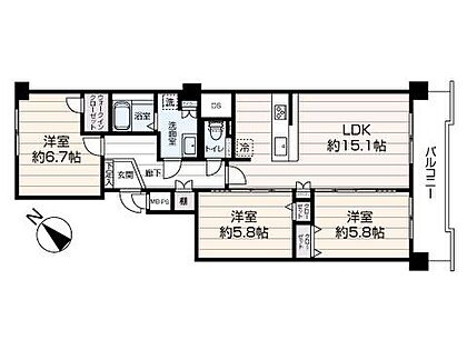 3LDK+WIC 専有面積81.22平米 バルコニー9.28平米