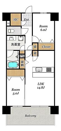 | 間取り | 2LDK | 専有面積 | 63.00m2(内法) |