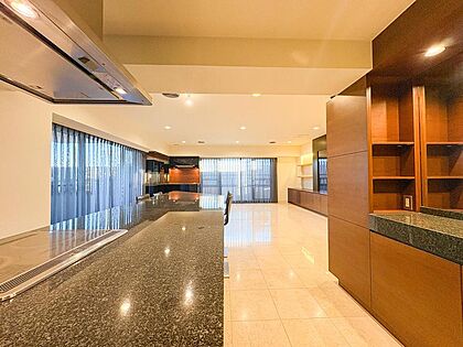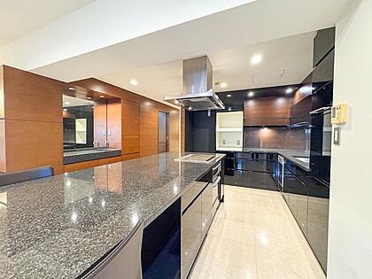 洗練されたデザインのアイランドキッチンは、家族の会話が弾む空間です。広々とした調理台で、お子様と一緒に料理を楽しめます。