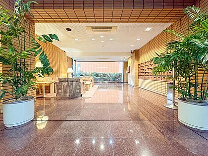 洗練されたデザインのエントランスは、観葉植物が心地よい空間を演出。広々としたロビーは、ご家族やゲストを温かく迎え入れ、日々の暮らしに上質感を添えます。