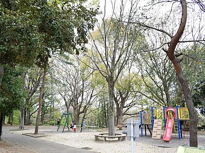 陽光が降り注ぐ青空の下、温かみのあるレンガ調の外観が印象的。紅葉が美しい並木道は、お子様との散歩や家族の憩いの場にぴったりです。