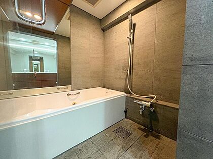 落ち着いた色合いのタイルで統一された浴室は、日々の疲れを癒すリラックス空間。広々としたバスタブでお子様とのバスタイムも快適です。