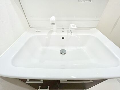 三面鏡の裏に、化粧品や衛生用品などを収納可能。洗面台をすっきりと保ちます!