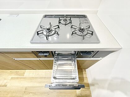 ガスコンロはSiセンサー搭載。火力調節や焦げ付き・消し忘れも防いでくれます。