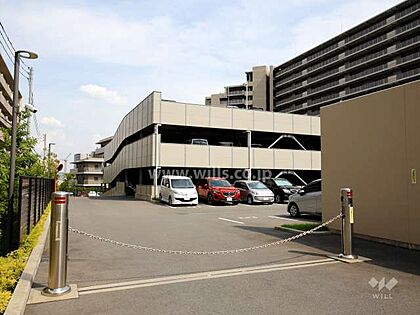 敷地内駐車場、駐車場棟(出入り口はロボットゲート付きです。)。北大阪急行線「千里中央」駅徒歩13分。2012年8月築。総戸数256戸の分譲マンションです。