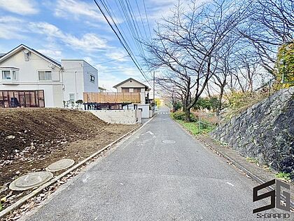 広々とした前面道路に面し、車の出し入れがしやすい現地外観。ゆとりある駐車スペースと開放感のある立地が魅力で、毎日の暮らしに快適さと安心をもたらすマイホームです。