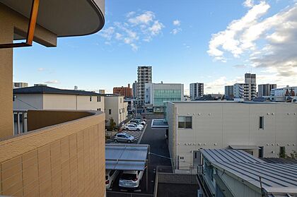 【バルコニーからの眺望】4階のお部屋ですが目の前に建物はなく日当たり良好です!目の前すでに建物が建っているので火を遮る建物が建つ心配もありません。