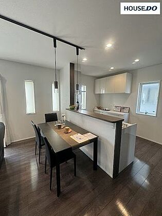 キッチンカウンターにダイニングテーブルをくっつければ、お料理を運ぶのも楽々♪お料理をしながら、お子様の宿題見守りもしやすいですね♪