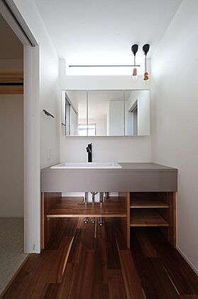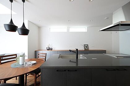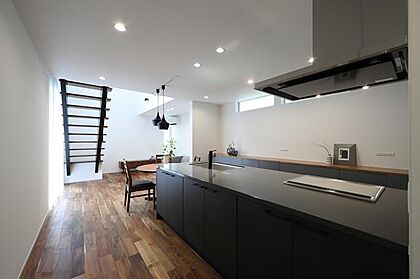 【接道】 角地 ( 私道 北東 6m ) ( 私道 南東 6m ) ・最長60年保証 ・SW工法・解放感あふれる吹抜とストリップ階段・木の温もりを感じるナチュラルモダンな内装・グレートーンで統一した上質なキッチン空間 |